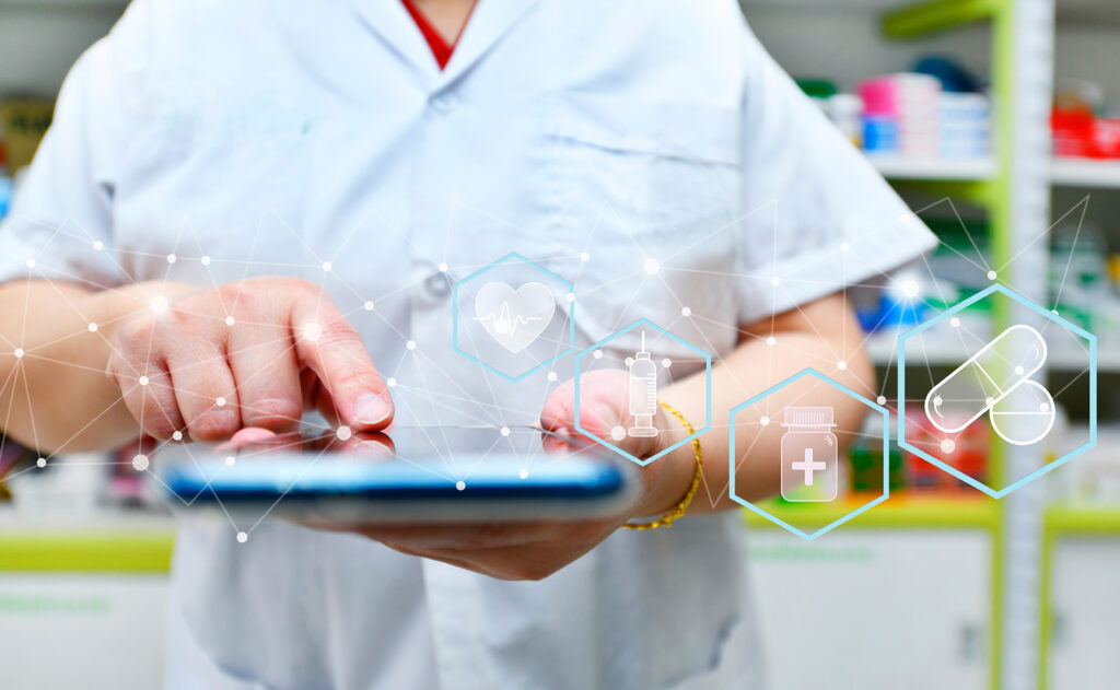 Door beschikbare koppelingen kan het apotheekteam ervoor kiezen om daar waar dat voldoende is, alleen digitaal te ondersteunen. Daarnaast maken wij het mogelijk om met een paar klikken aan de balie informatie te raadplegen en te verstrekken, in meerdere talen.